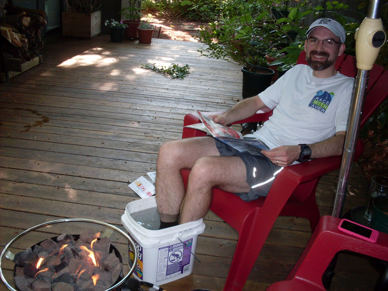 Brad decided on an ice bath for his feet, which have been giving him a little trouble: